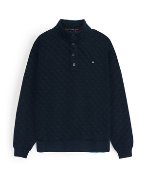 Premium TH Quilted Button Up Men's Sweat - Navy Blue