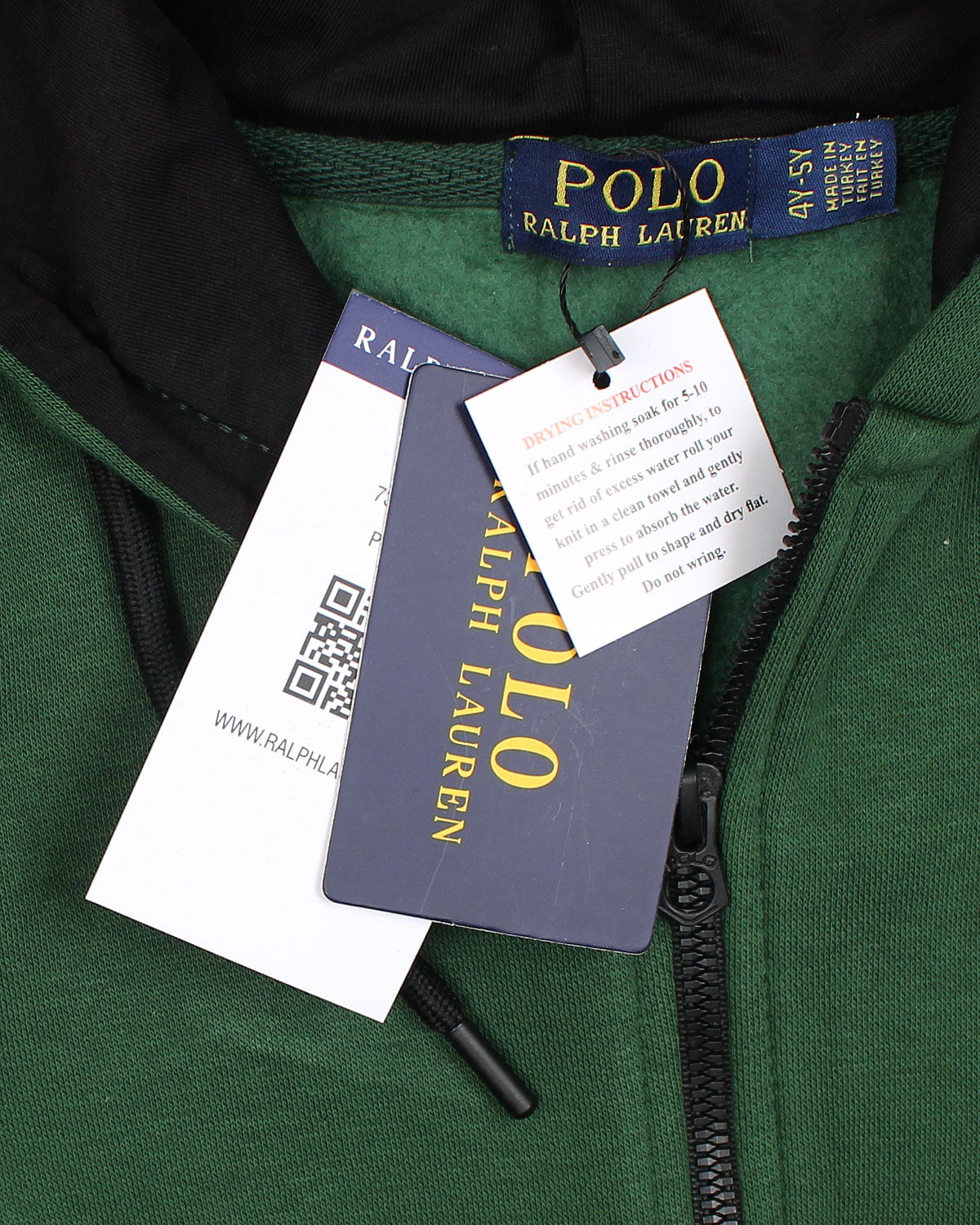 Add playful charm to your child’s wardrobe with this forest green zip-up hoodie from Polo Ralph Lauren, featuring the brand's iconic Polo Bear embroidered on the chest. The hoodie blends comfort and classic style, making it perfect for everyday wear, school, or outings.